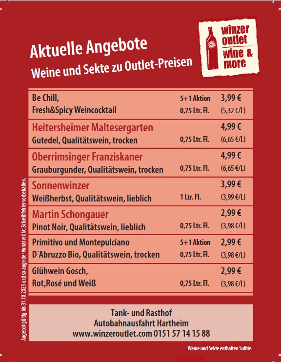 Herzlich Willkommen im Winzer Outlet! Sie können ferner vorbestellen und abholen.