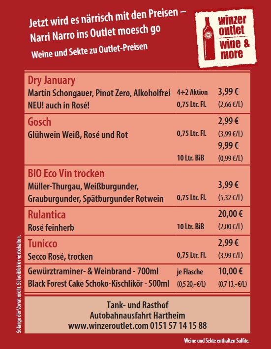 Herzlich Willkommen im Winzer Outlet! Sie können ferner vorbestellen und abholen.